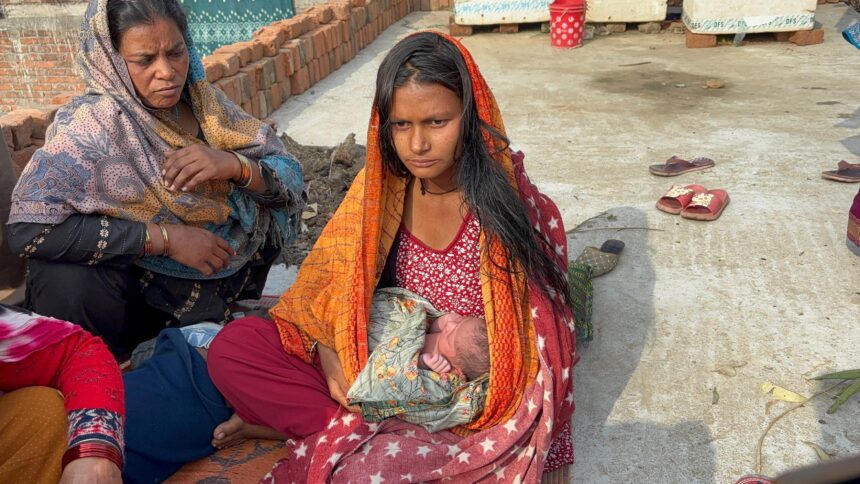 नवजात को लेकर पति के शव से लिपट कर रो रही थी पत्नी