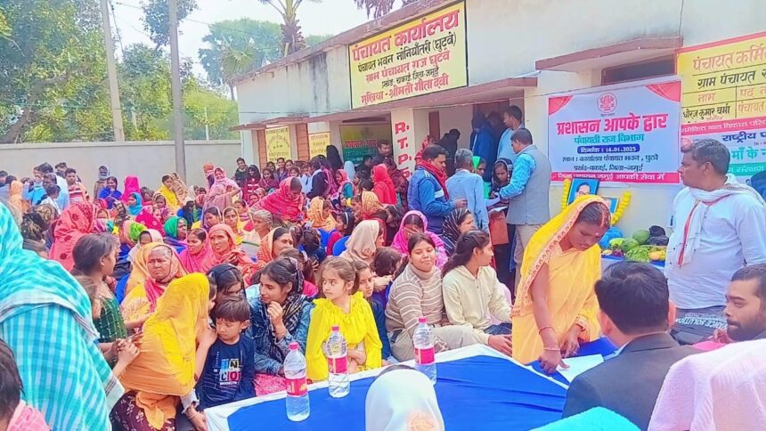 शिविर में पदाधिकारियों द्वारा सरकार की विभिन्न जनकल्याणकारी योजना की जानकारी देते हुए उसका लाभ लेने के तरीके को बताया। कार्यक्रम में कल्याण विभाग, बाल विकास परियोजना विभाग, मनरेगा, सांख्यिकी विभाग, राजस्व विभाग, स्वच्छता विभाग, कृषि विभाग, सामाजिक सुरक्षा पेंशन, स्वास्थ्य विभाग, श्रम संसाधन विभाग, खाद्य एवं आपूर्ति विभाग, प्रधानमंत्री आवास योजना, जीविका सहित सभी विभागों के स्टाल लगाए गए थे।मौके पर सीओ राजकिशोर साह,कृषि पदाधिकारी शिवशंकर चौधरी, श्रम पदाधिकारी टुनटुन कुमार, परमानंद दास सभी विभागों के पदाधिकारी व कर्मी सहित सैकड़ों ग्रामीण मौजूद थे।