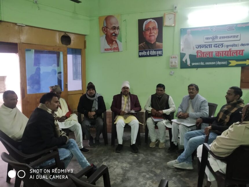 सासाराम (रोहतास)|बुधवार को रोहतास जिला जनता दल यूनाइटेड के प्रभाकर रोड स्थित जिला कार्यालय में एनडीए के घटक दलों के जिला अध्यक्ष की एक बैठक हुई। इस बैठक की अध्यक्षता जनता दल यूनाइटेड के रोहतास जिला अध्यक्ष अजय सिंह कुशवाहा ने की। बैठक का उद्देश्य आगामी 30 जनवरी को रोहतास जिला में आयोजित हो रहे एनडीए के कार्यकर्ता सम्मेलन को सफल और बनाना था।